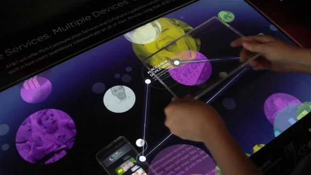 Microsoft Surface Table app showcasing the versatility of a network technology which allows users to send and receive calls on any number of different devices.
